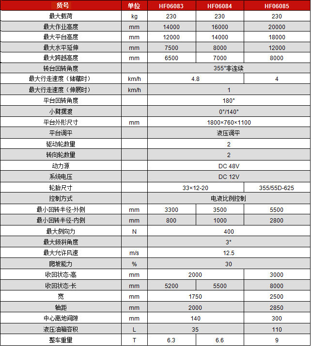 自動調平工作平臺液壓旋轉工作平臺霍爾效應全比例控制器行駛確認AC電源線接至工作平臺喇叭計時器傾斜警報全時正牽引驅動雙速行駛馬達應急泵CAN總線智能控制超載限制選配特征2.4m平臺籃擺動軸工作平臺旋轉門工作平臺備用杠桿焊機預接組件焊接線接至工作平臺空氣管接至工作平臺液壓油冷卻器惡劣環境套件航空防撞組件工具托盤警報套件平臺工作燈