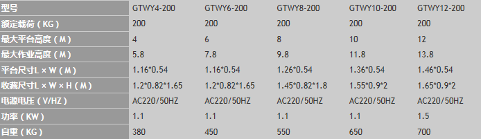 2. 該系列最大平臺(tái)高度:4M、6M、8M、10M、12M